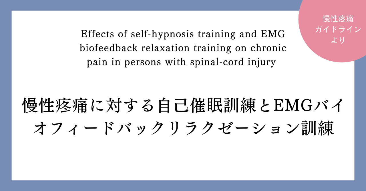 慢性痛は脊髄損傷を受けた患者にとって深刻な問題で、約3分の1の患者が持続的な痛みを経験しています。この痛みは生活の質や精神的な健康に大きな影響を与えます。そこで、本研究では自己催眠療法と筋電図バイオフィードバック療法を用いて、慢性痛の管理にどのように役立つかを調べました。