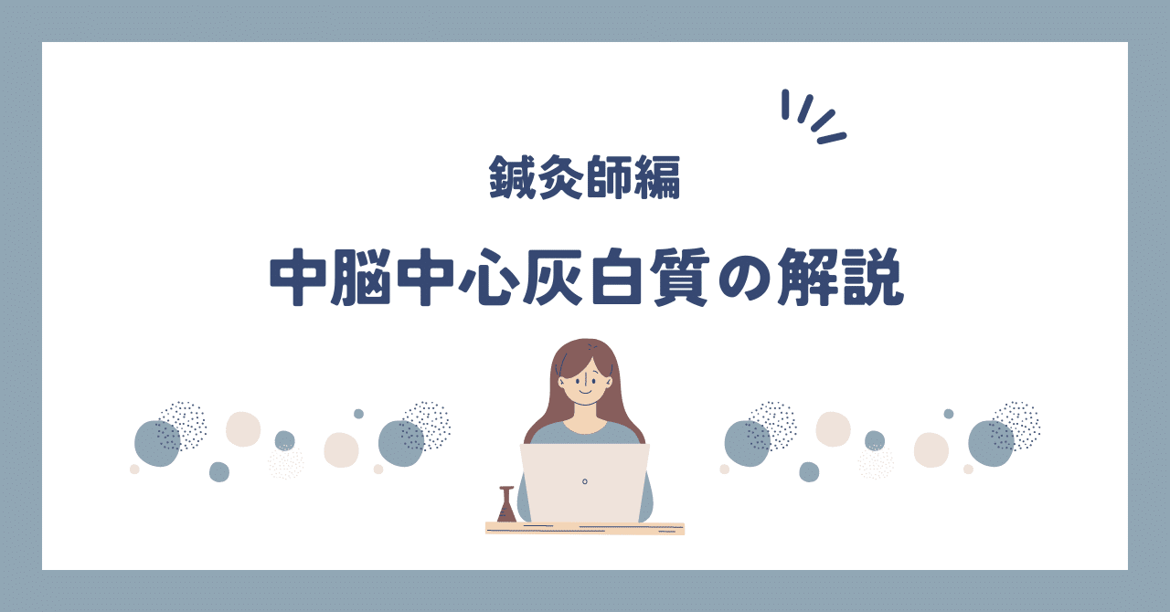 中脳中心灰白質は、中脳水道の周りにある部分で、感情や自律神経の情報をまとめて、行動や自律神経の働きを調整します。ここには痛みを和らげる神経がたくさんあり、痛みや感情に関係しています。